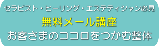 下記の無料メール講座では、セラピストやヒーラー、エステティシャンの方が、無理なく整体を取り入れて、お客さまの心をつかんで信頼を得るためのヒントをお伝えしていきます。